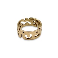 This 10k solid yellow gold ring's design was inspired by the bacteria found in our microbiome. Microbes are the architects of our biological world and our bodies. No two shapes on the ring are alike. Available in Sterling Silver as well.*Approximately 9mm wide and 1.5mm thick.*Handcrafted out Solid 10K Yellow Gold (optional 14k available for an additional $150)